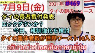 しゃべりタイ|2021年7月9日タイの朝のニュース紹介、タイの重症者数が世界ワースト10入り、タイの長者番付発表、今日会議でロックダウンを検討、など