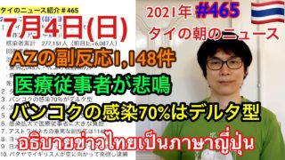 しゃべりタイ|2021年7月4日タイの朝のニュース紹介、バンコクの感染70%はデルタ型、アストラゼネカの重篤な副反応の1,148件、医療従事者が悲鳴、など